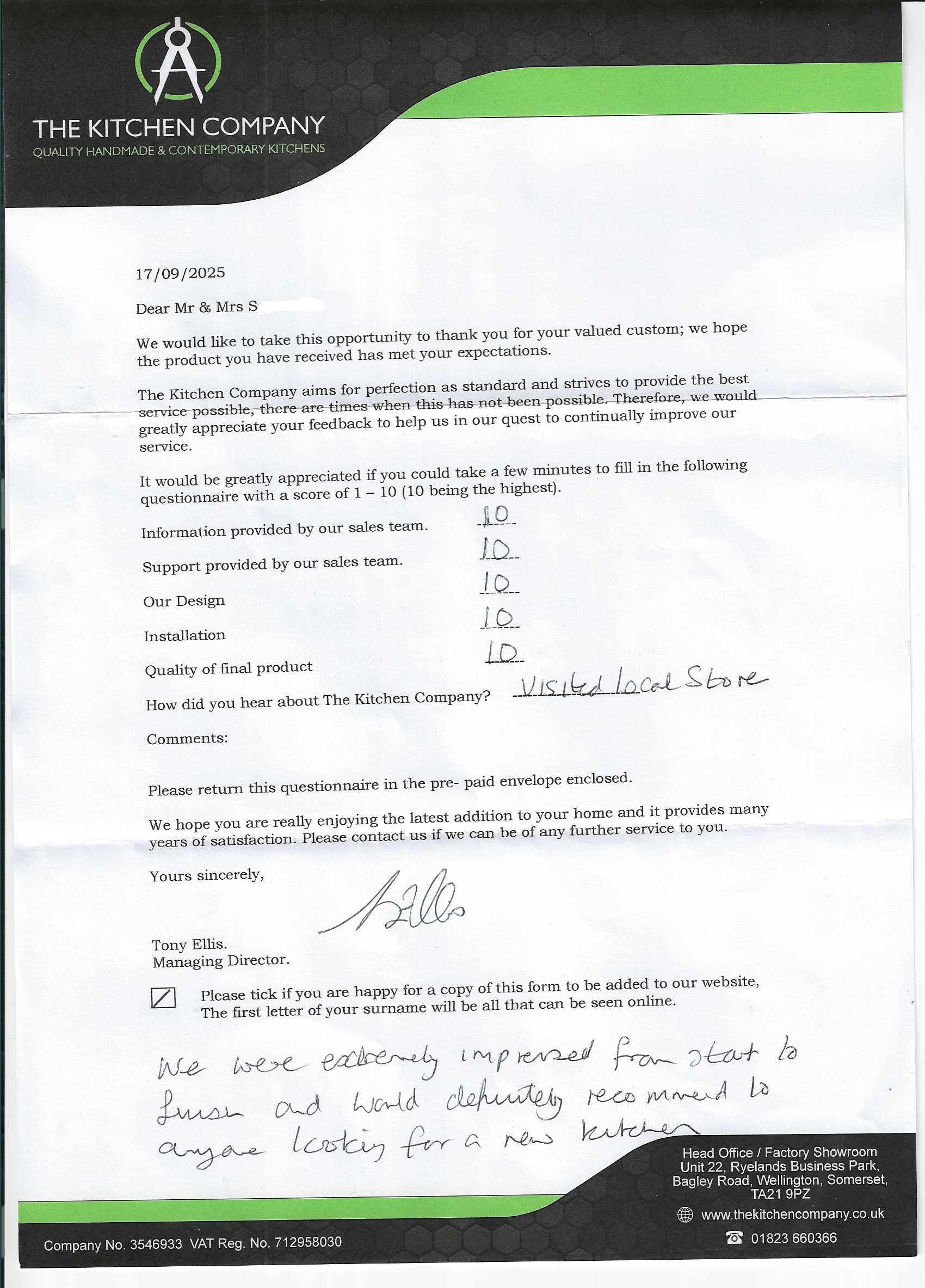 We were extremely impressed from start to finish and would definitely recommend to anyone looking for a new kitchen.